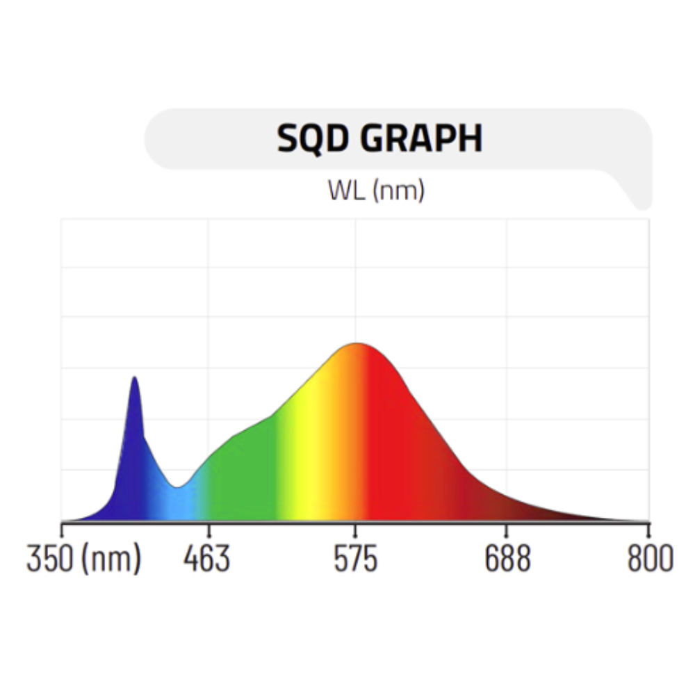 The VF 120W uses top-bin White 4000K and Warm White 3000K LEDs (Spectrum G) to deliver a balanced, plant-friendly output designed for healthy leaf and stem development. This makes it especially effective for seedlings, clones, and young plants that require controlled intensity and stable spectral performance.